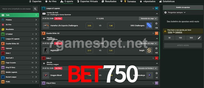 A aposta Bet750 oferece aos jogadores a experiência mais conveniente de apostas em eSports!